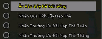 • Nhận thông qua Túi Tân Thủ, phần Rút đồng nạp Thẻ chọn tiếp Nhận quà Tích Lũy Nạp Thẻ